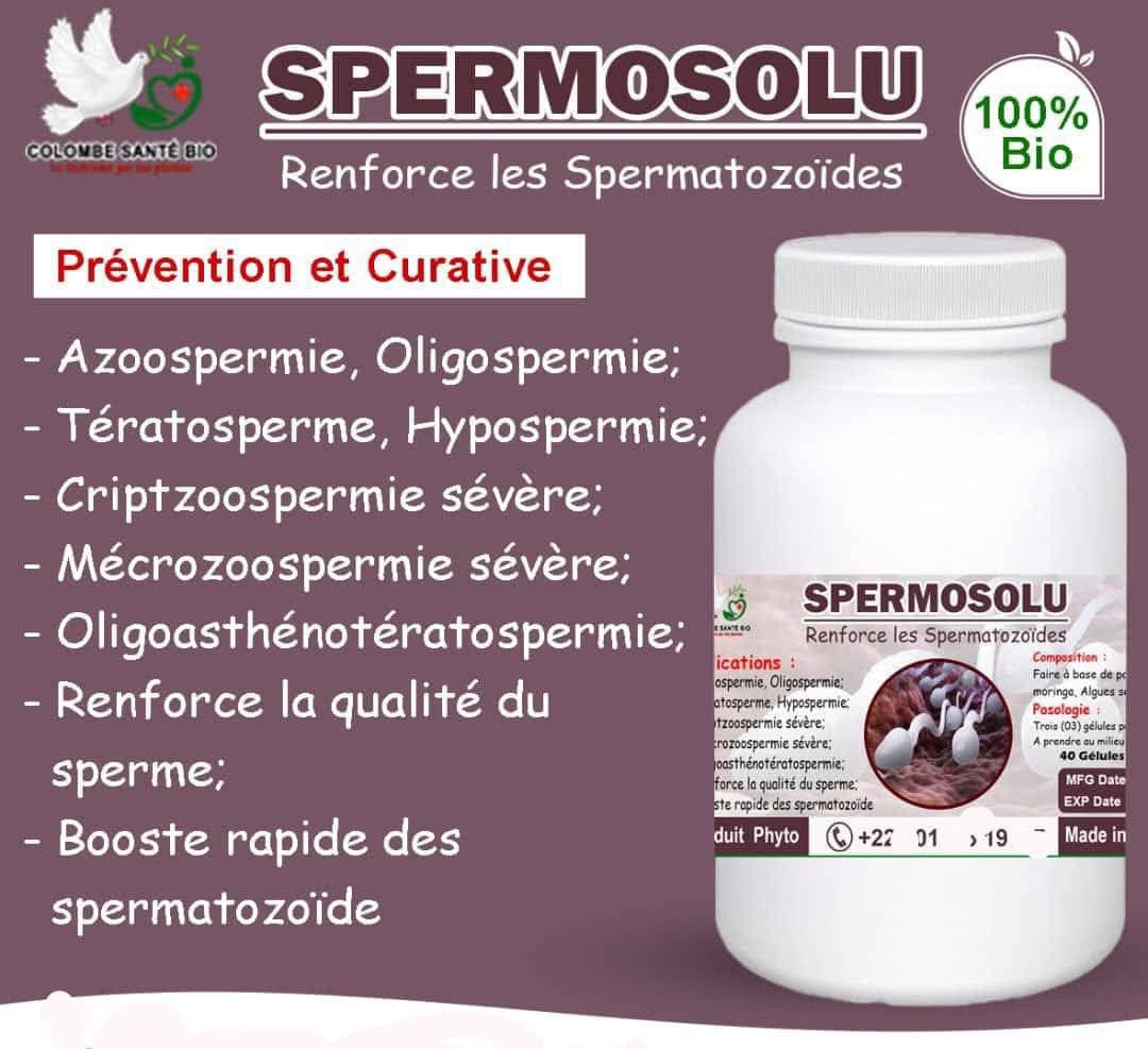 SPERMOSOLU est un complément alimentaire 100% bio conçu pour renforcer la qualité des spermatozoïdes et améliorer la fertilité masculine. Grâce à sa composition naturelle, il aide à traiter diverses anomalies spermatologiques, favorisant ainsi la santé reproductive.